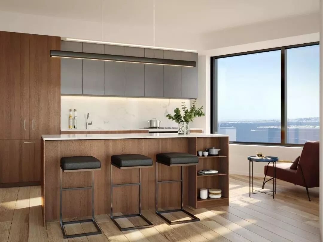 4. 铁狮门和万科强强联合,必属精品。开放式厨房、米勒品牌厨具,SOZO Studio设计的定制橱柜、精心设计的中岛和储藏空间、令人心旷神怡的暖色调装修,在旧金山湾的暖阳光线的映照下,更加的沁人心脾。
